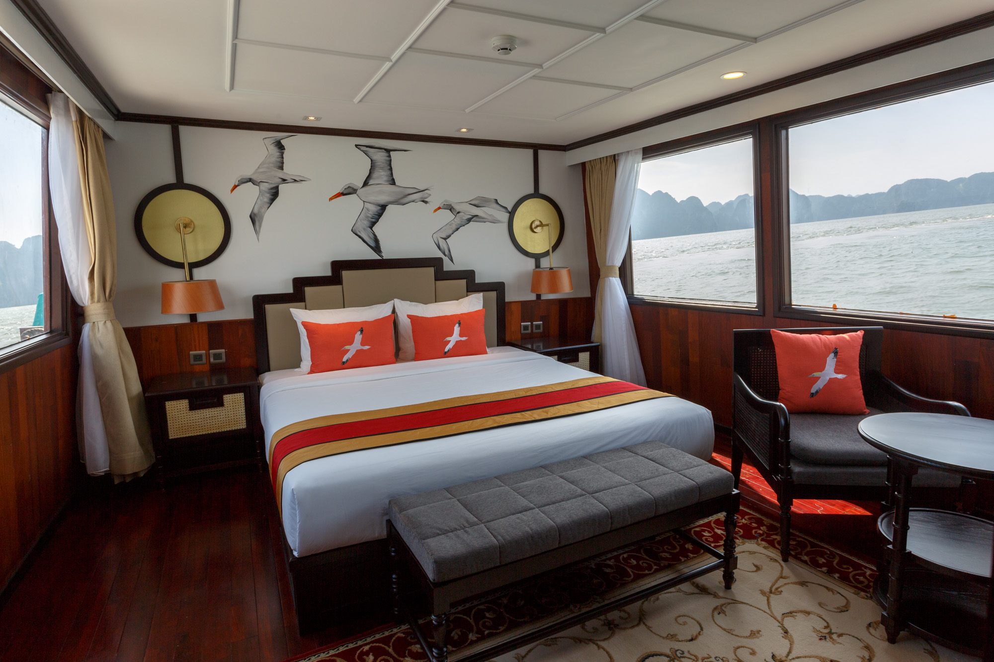 From indulging in exquisite meals accompanied by fine wine and prepared with the freshest ingredients catered to your preferences to tailor-made itineraries to explore the bay, the Emeraude Premium offers a once-in-a-lifetime chance to experience Halong Bay with your loved one.