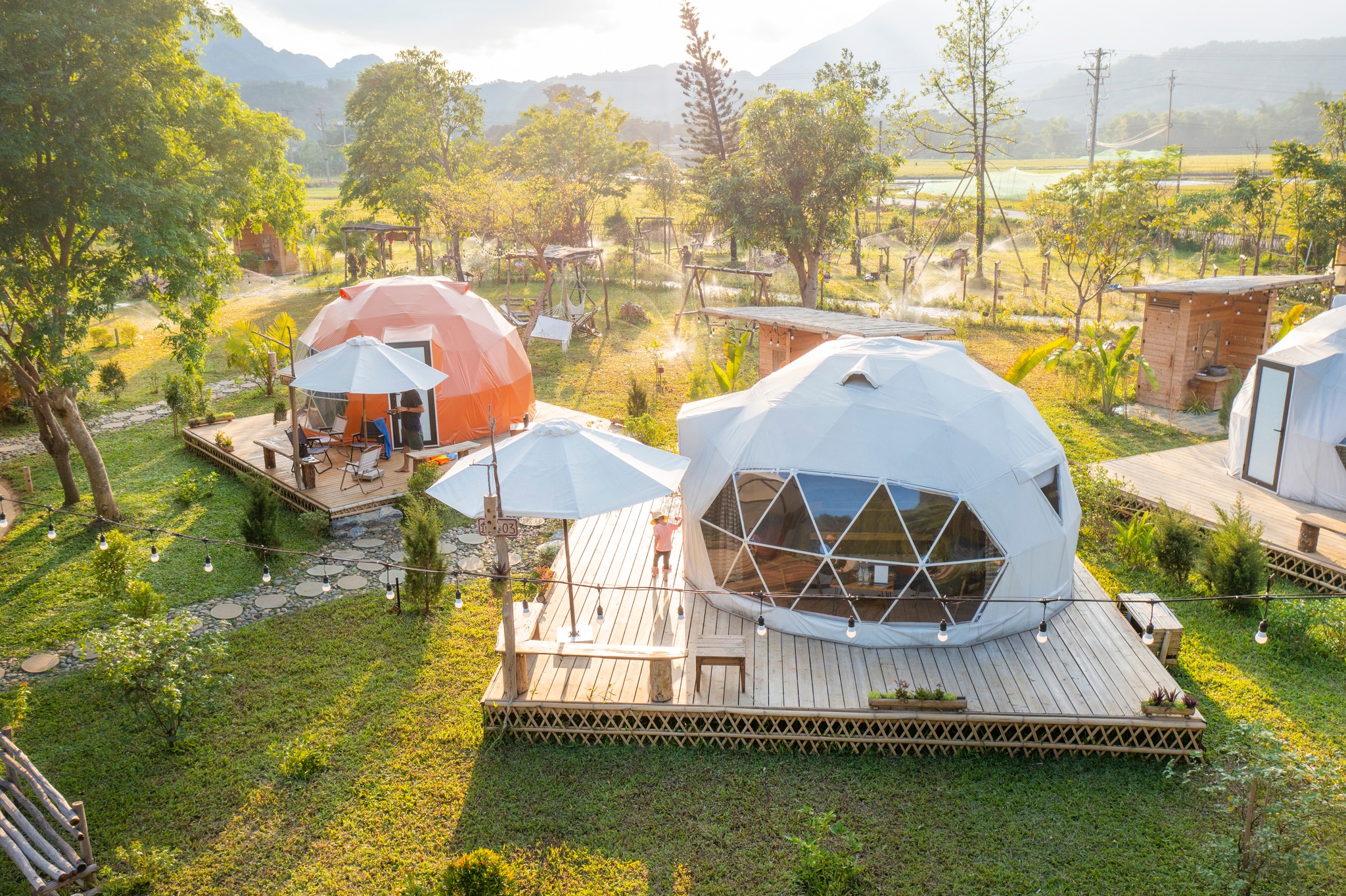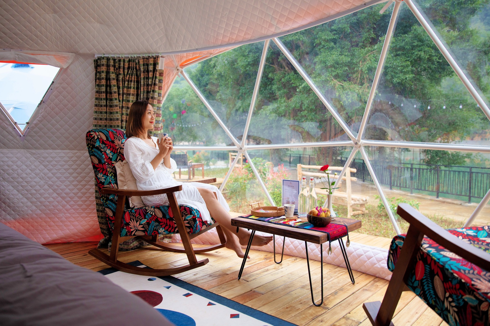 The gardens around our glamping site burst with color under the afternoon sun, the perfect time to get dressed up for great check-in photos with friends and family. Guests can also pre-book an afternoon tea party for a premium experience and another “wow” photo backdrop.