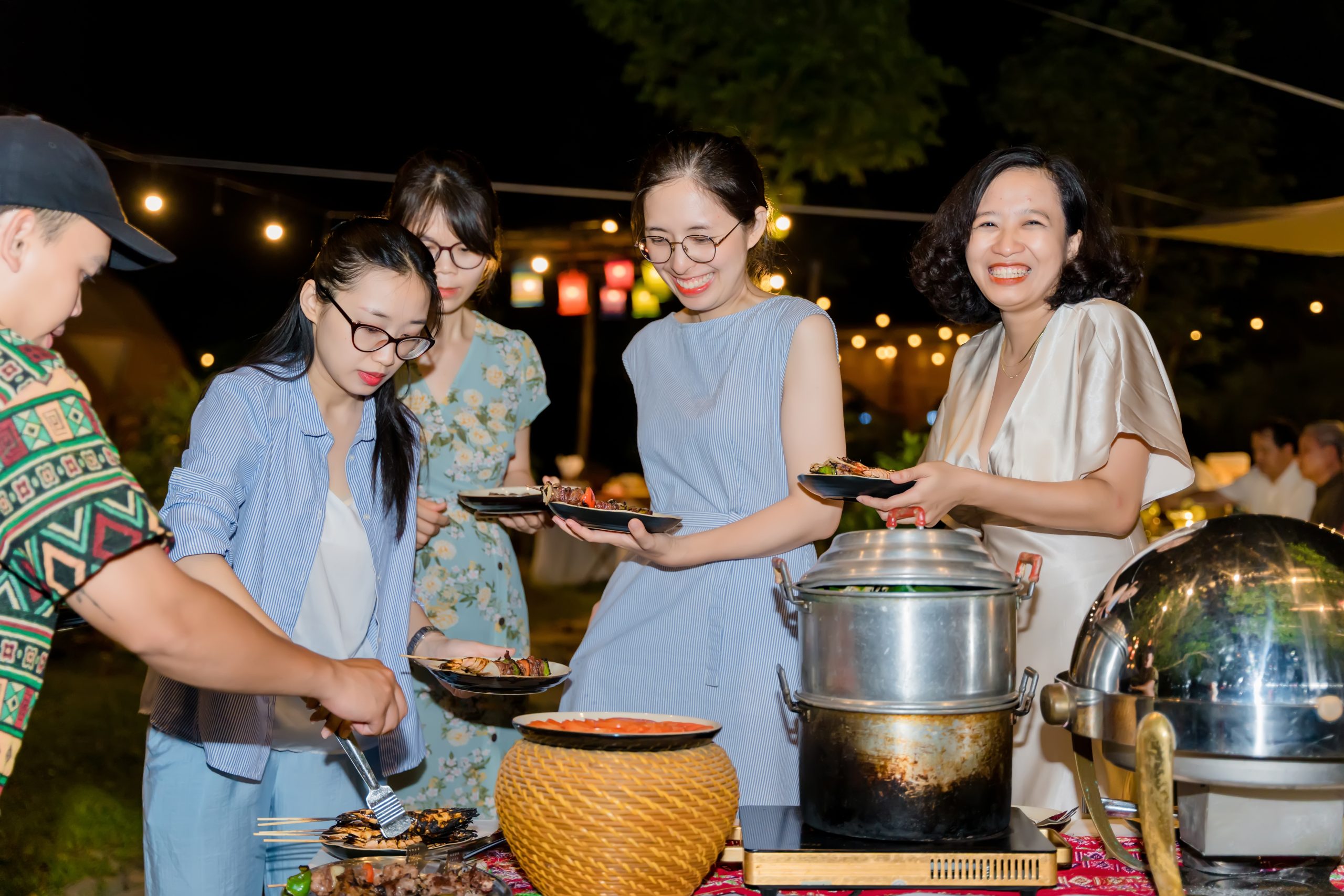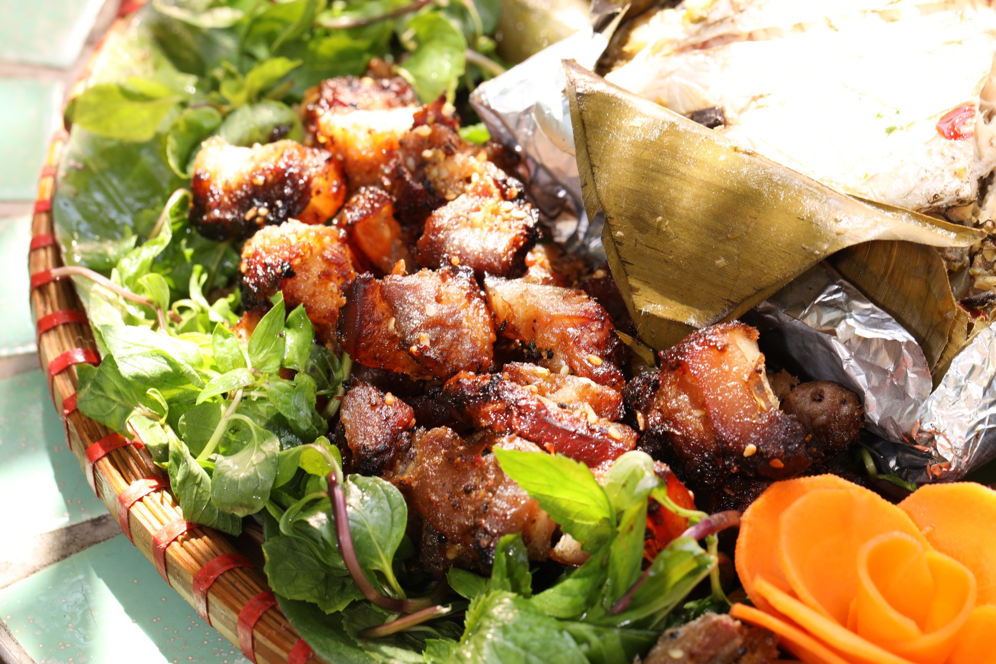 To end a day of fun, enjoy an outdoor BBQ under magical shimmering lights in the garden glamping area. Prepared by the kitchen team at Bo Luong Restaurant, this feast of richly marinated meats features flavors from the surrounding mountains and forests. Please book this in advance so the staff can have everything ready by mealtime.