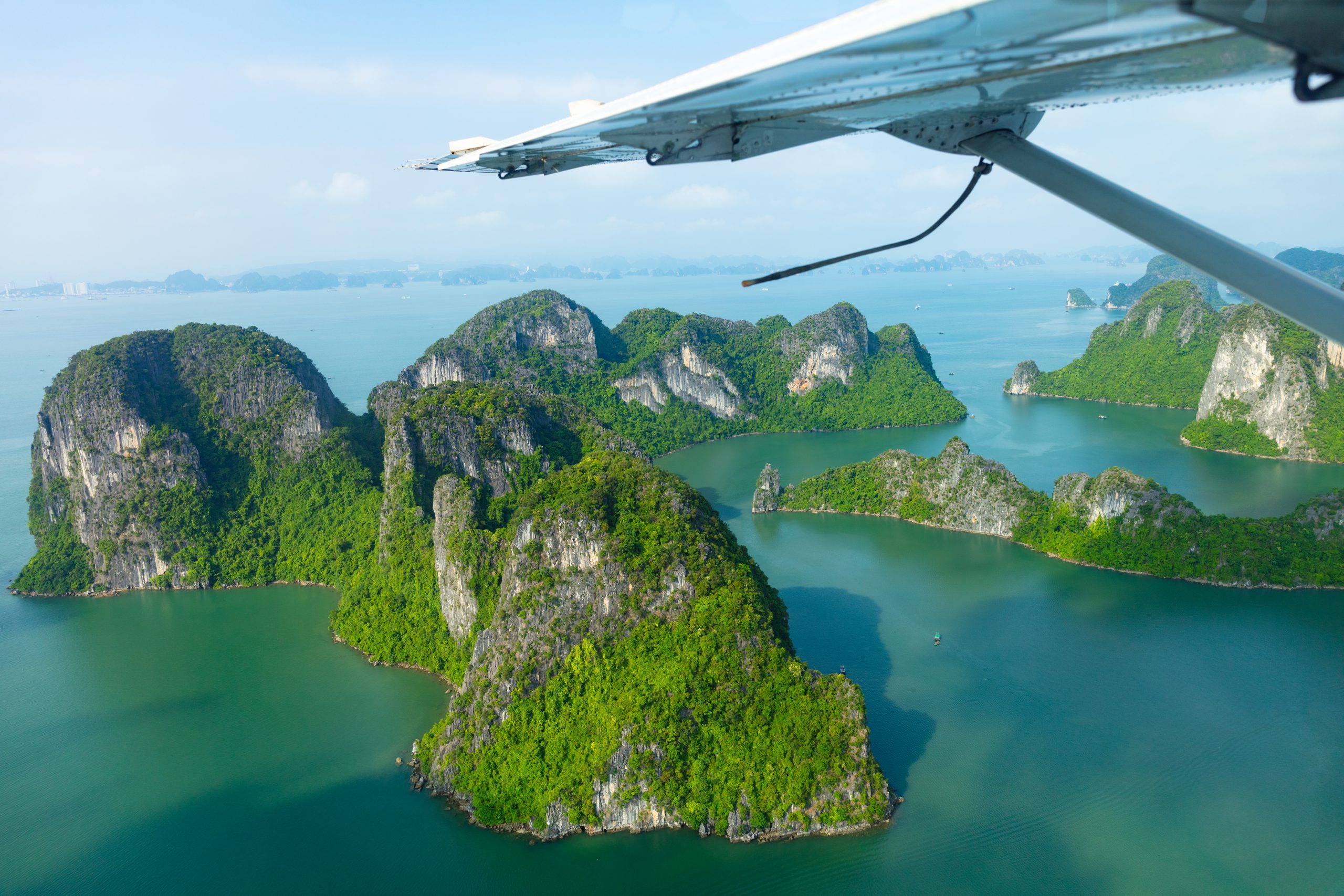 1. Hai Au Aviation’s scenic flights over Halong Bay and scheduled flights from Noi Bai to Tuan Chau