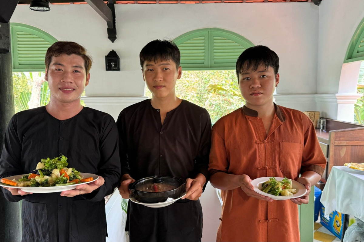 Staff clad in flowing Vietnamese tunics and local costumes serve diners traditional dishes from the Mekong Delta like fermented fish hot pot, crispy fried elephant ear fish, and fresh summer rolls. Lunch in this peaceful, village-like setting is an experience to be cherished.