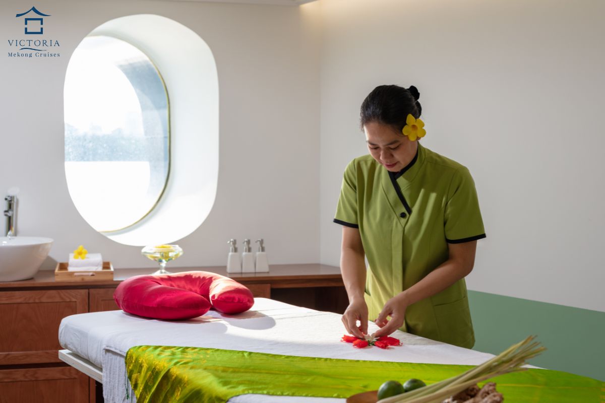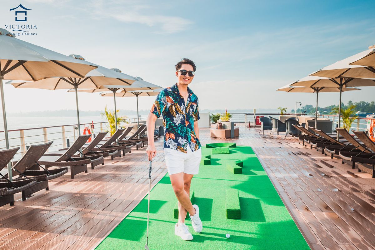 Du thuyền Victoria Mekong cung cấp nhiều tiện ích giải trí cho du khách, bao gồm spa, phòng gym, phòng chiếu phim, phòng trò chơi, cửa hàng đồ lưu niệm, sân golf mini, bể bơi vô cực kết hợp bể sục lẫn không gian thư viện yên tĩnh. Vì vậy, du khách tham gia sự kiện trên du thuyền Victoria Mekong được đảm bảo có thể tìm thấy không gian phù hợp với sở thích cá nhân.