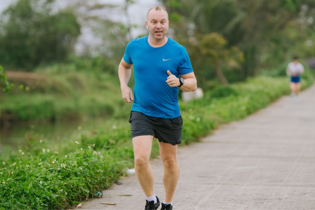 Ông Phạm Văn Dũng hoàn thành cự ly 21km chạy tại Hội An tháng 4/2024.