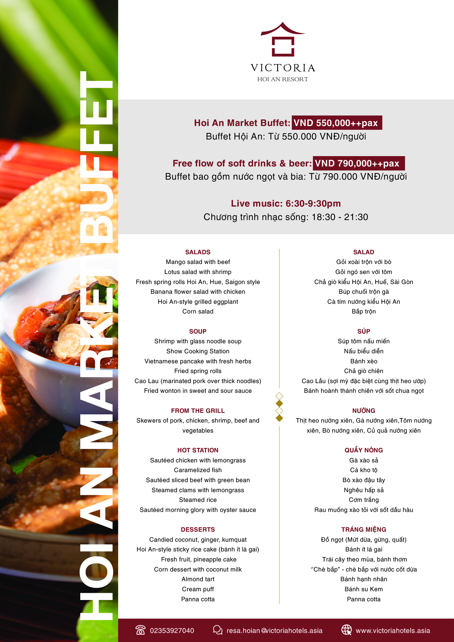 Lôi cuốn từ hương vị ẩm thực tinh tế đến bày trí bắt mắt, nhà hàng L’Annam sang trọng bên biển Cửa Đại luôn chiều lòng các vị thực khách bằng bữa tiệc Hoi An Market Buffet diễn ra vào tối thứ 3 hàng tuần, hoặc đại tiệc BBQ Buffet đầy màu sắc vào tối thứ 7 hàng tuần bên bể bơi vô cực. Món ăn ngon kết hợp với những chương trình biểu diễn nhạc sống và những điệu múa truyền thống pha lẫn hiện đại chắc chắn sẽ làm phong phú thêm trải nghiệm ẩm thực của du khách về mội Hội An tươi đẹp.