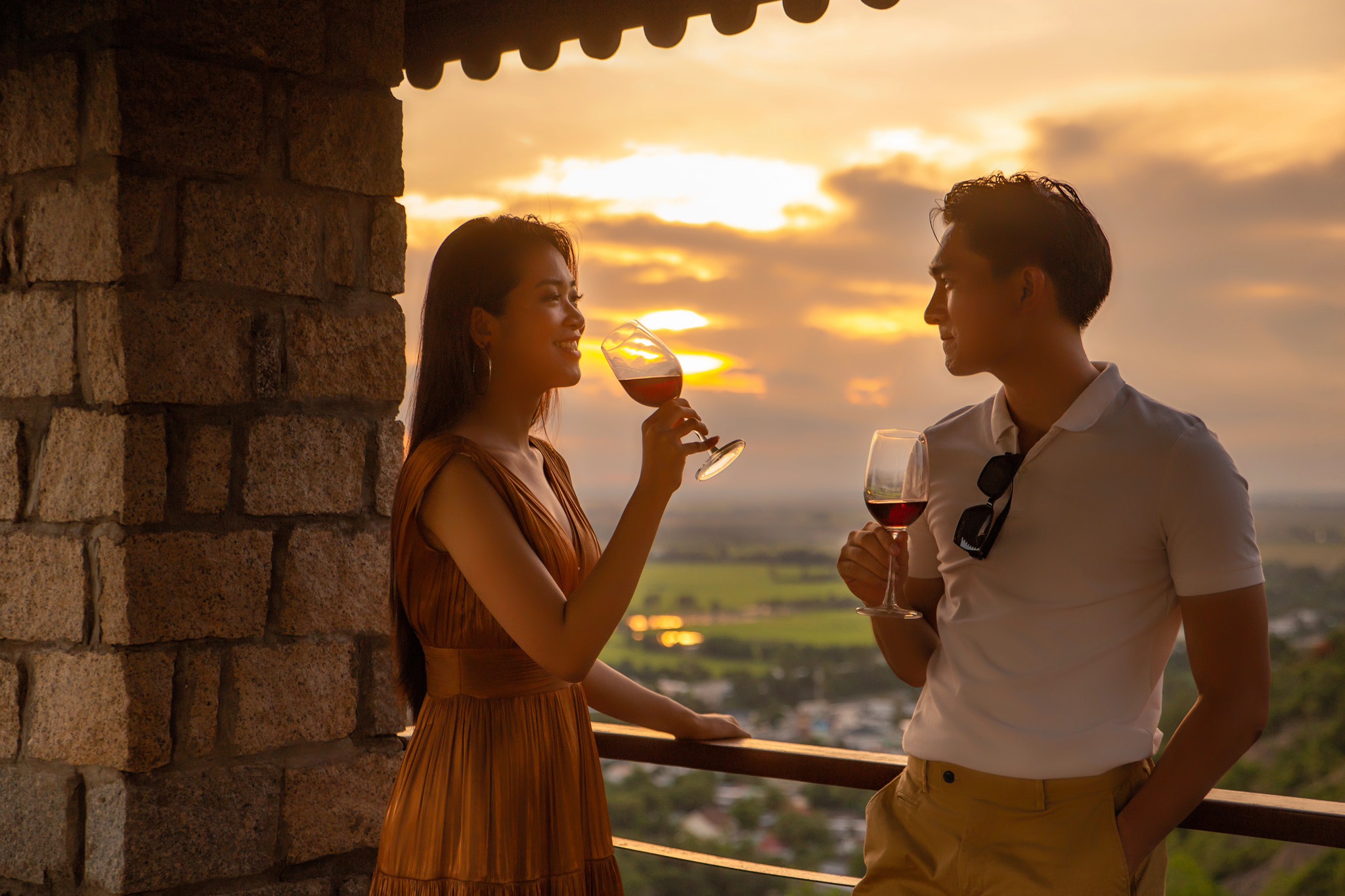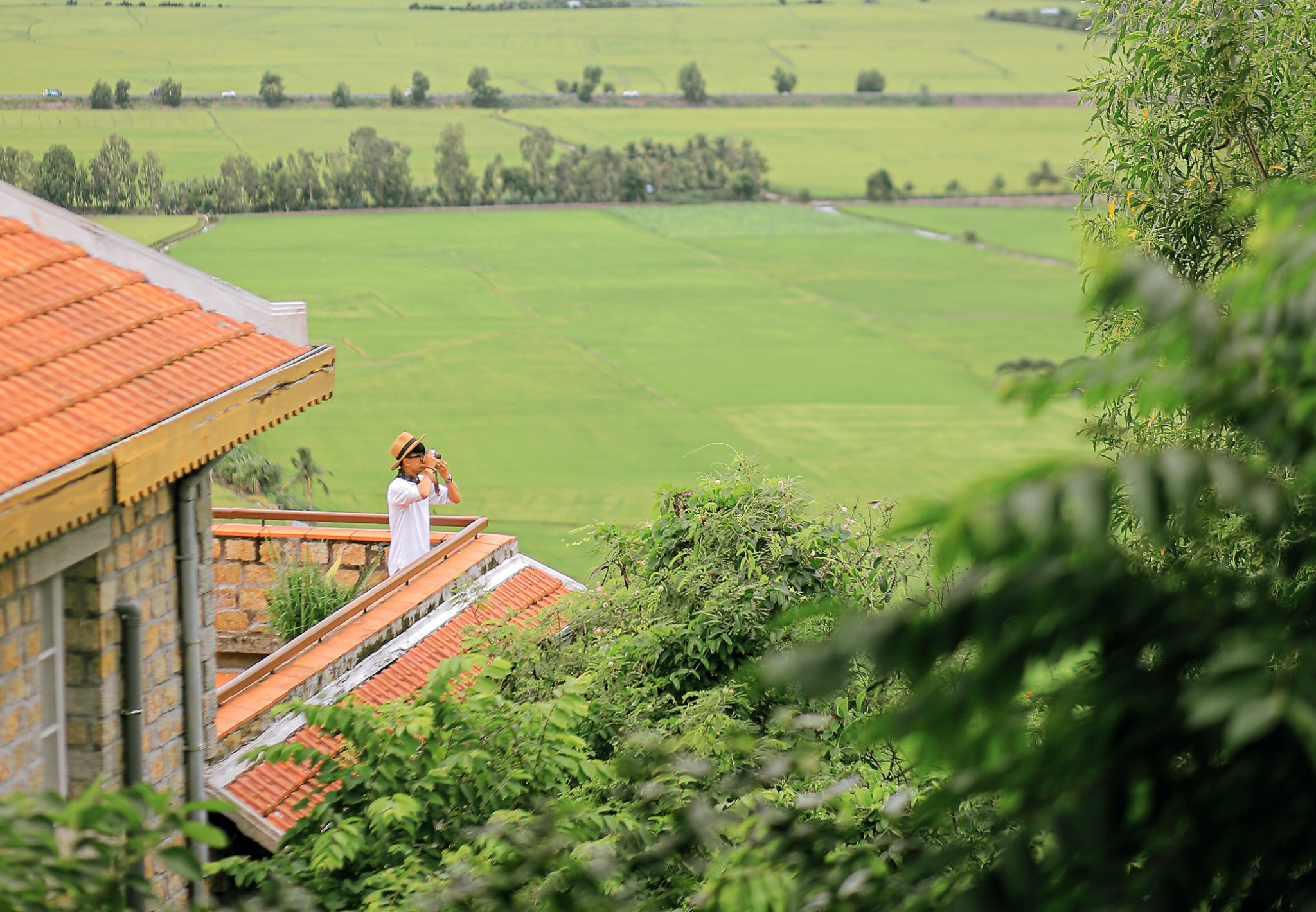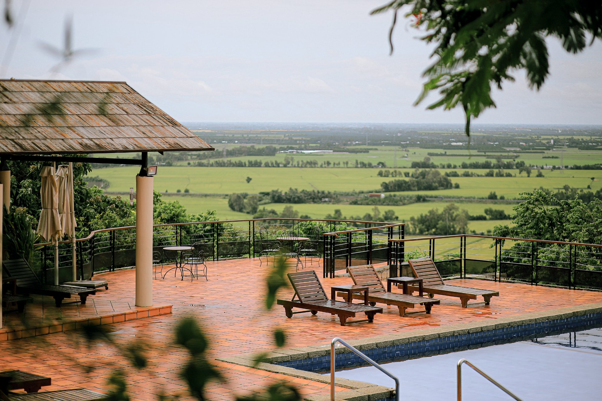 Tại Victoria Núi Sam, du khách có thể nằm dài thư giãn trong làn nước mát của chiếc bể bơi lưng chừng núi hoặc đắm mình trong chiếc view “đắt giá” của lầu vọng cảnh khi phóng tầm mắt ra nhìn bao quát cả những cánh đồng lúa bạt ngàn ở bên dưới và bầu trời rộng mở ở trên cao.