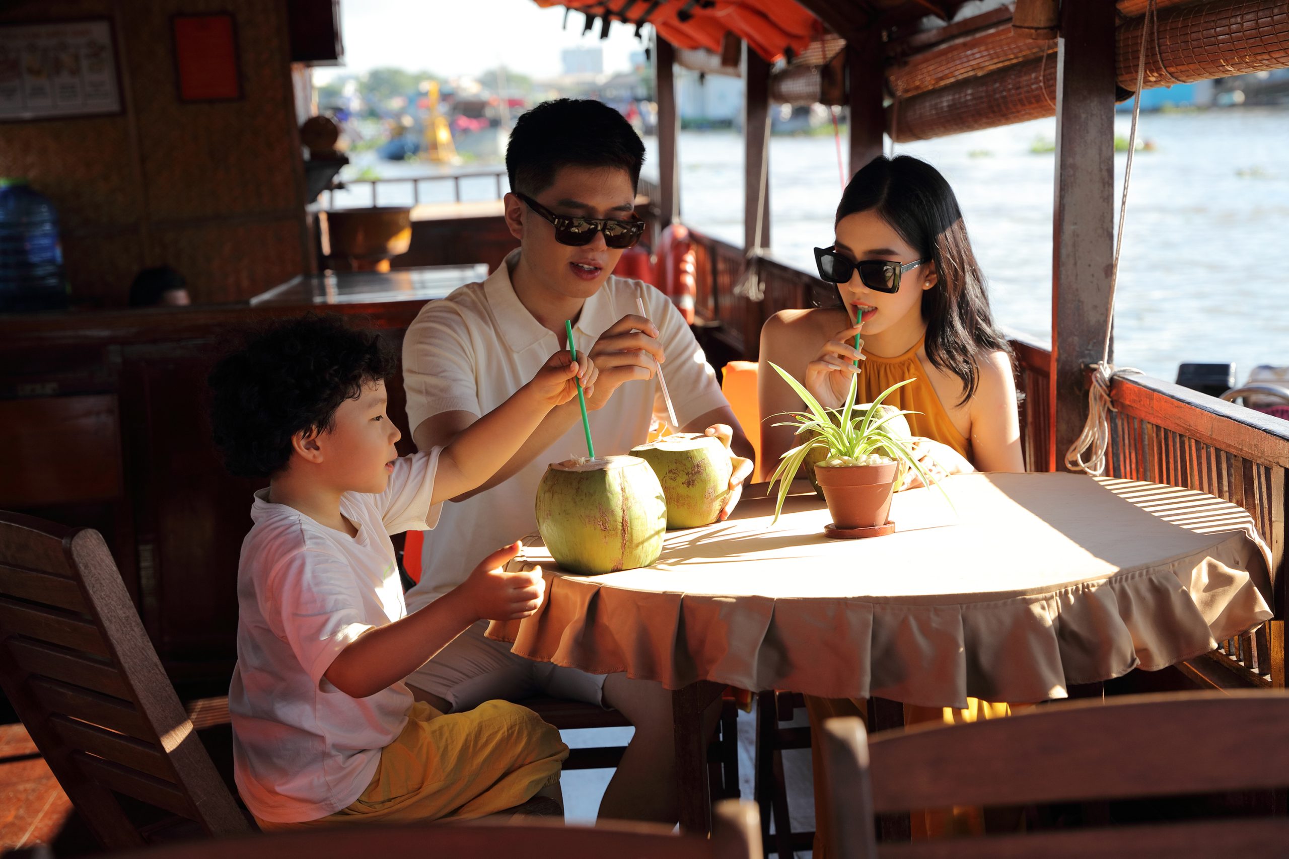 Để khởi động một ngày mới tại Victoria Châu Đốc, du khách có thể ngắm bình minh đẹp ná thở trên sông khi ngồi trên chiếc thuyền gỗ nhỏ xinh xuôi theo dòng nước hoặc thưởng thức cảnh bình yên giữa không gian vườn xanh mát của Victoria Riverside Cafe hay bể bơi ven sông.