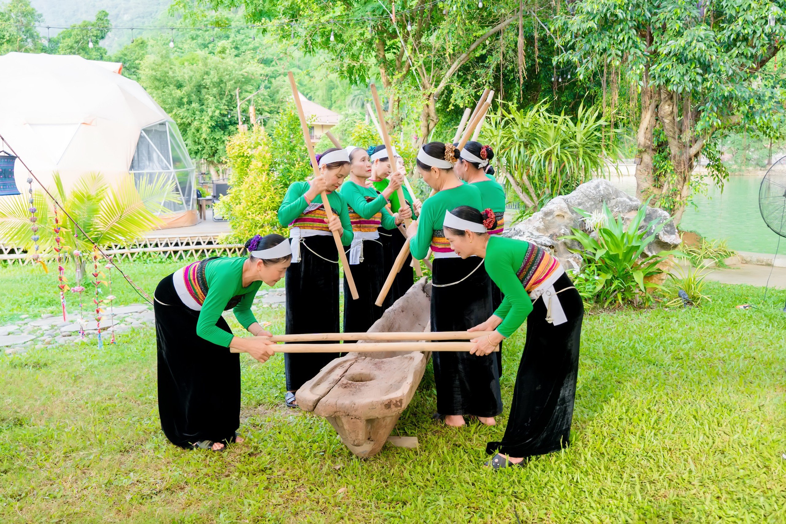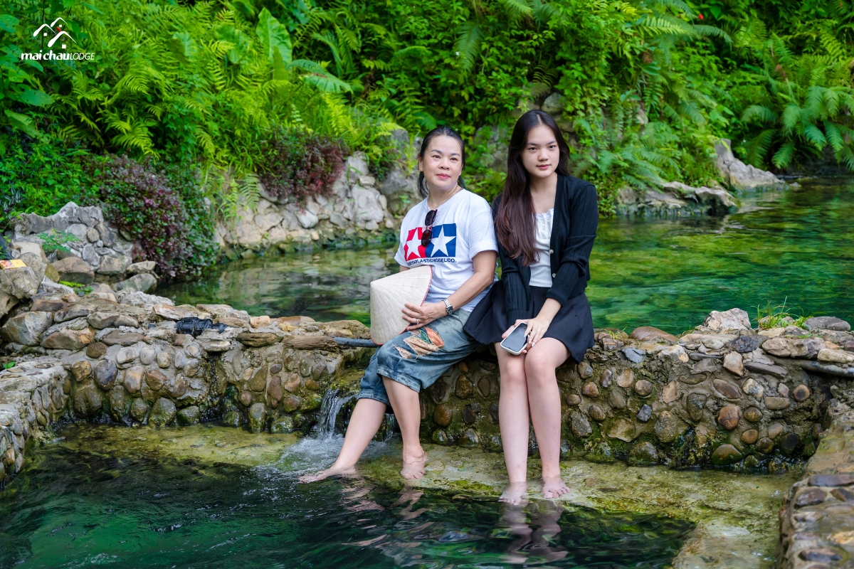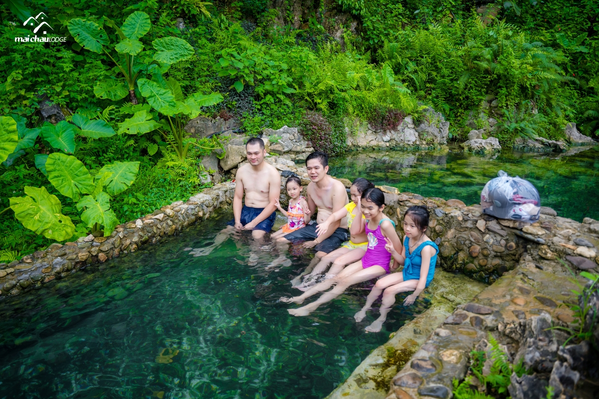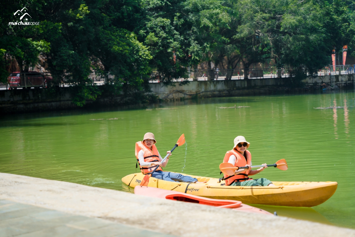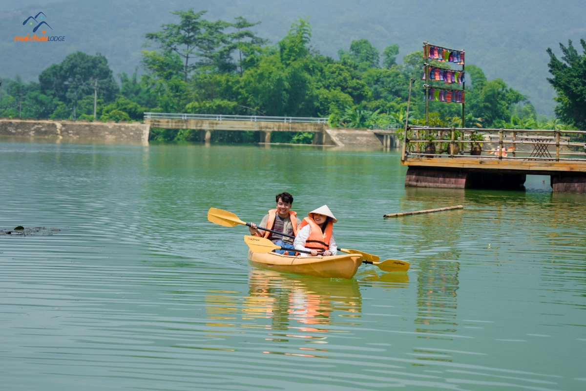 Nằm nép mình giữa cánh đồng lúa của thung lũng Mai Châu, Mai Châu Lodge chào đón đoàn báo chí với chương trình hấp dẫn như khám phá suối khoáng nóng tự nhiên Bò Ấm hay chèo thuyền kayak săn hoa súng hồng nở vào buổi sáng trên hồ Mỏ Luông.