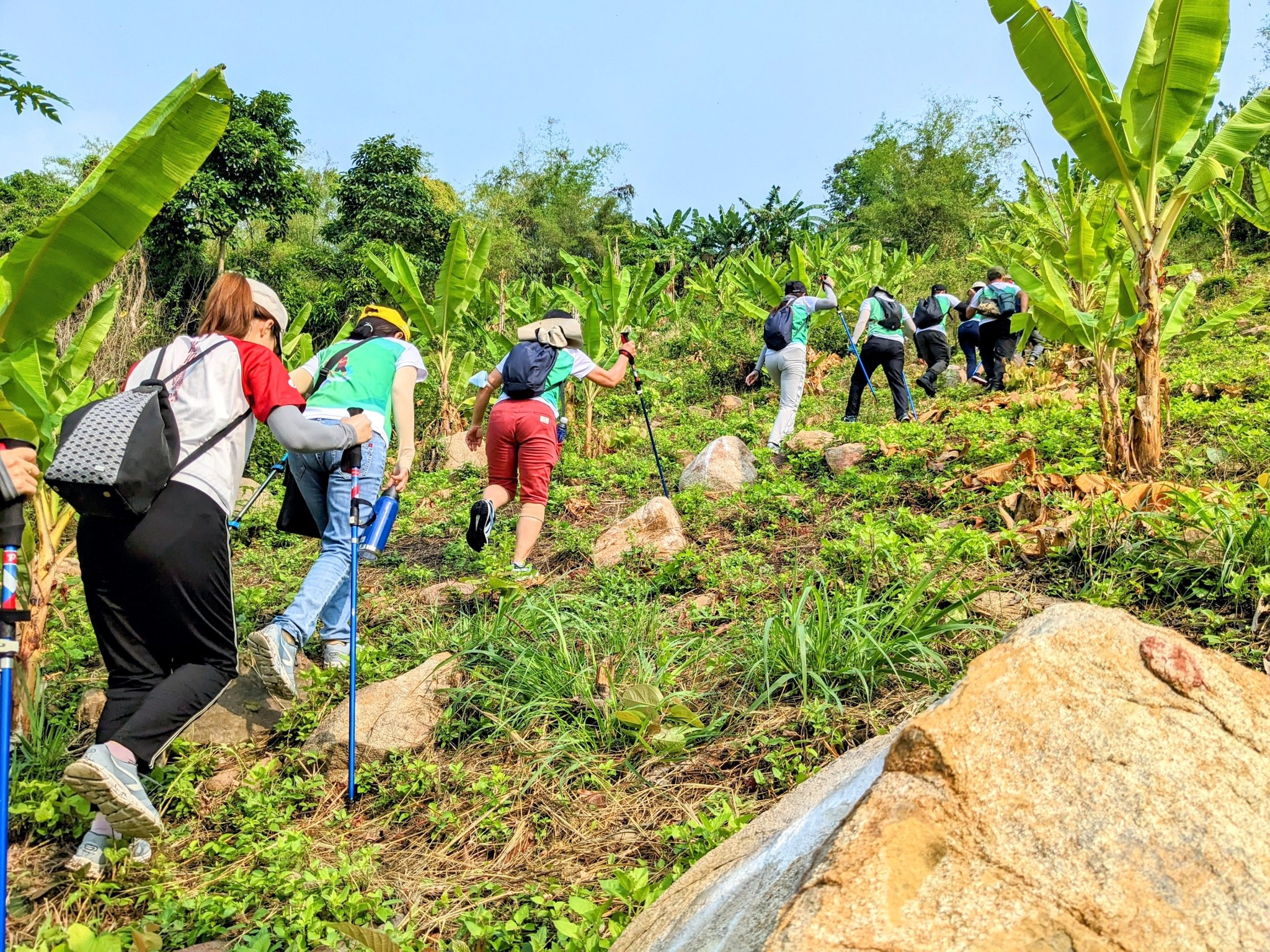 Trekking Núi Cấm là một trong những hoạt động giúp tăng tinh thần đoàn kết nội khối bởi đây là một hoạt động team building mang tính đồng đội cao. Tham gia hoạt động này, du khách sẽ cùng nhau băng rừng chinh phục những lối mòn lắt léo, lúc lên, lúc xuống, đi xuyên qua những cánh đồng lúa bằng phẳng hay vườn cây ăn trái trĩu quả của miền Tây.