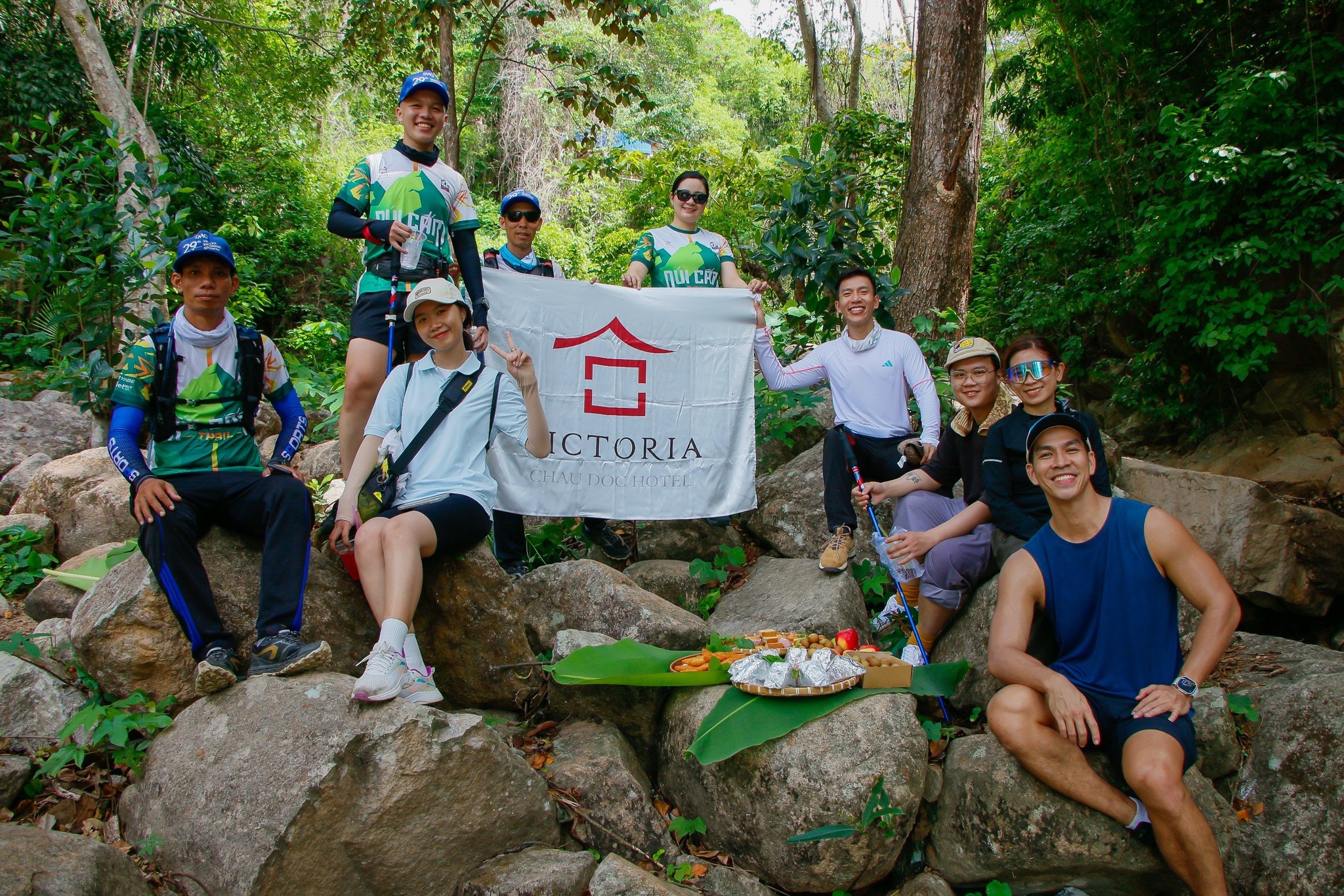 Trên suốt chặng đường trekking Núi Cấm, khách sạn Victoria Châu Đốc sẽ bố trí các điểm tiếp sức với đủ loại nước uống, trái cây đặc sản địa phương như quả hồng quân, thốt nốt, mãng cầu,… Không chỉ vậy, du khách còn có cơ hội gặp gỡ và giao lưu với những người dân Khmer trong trang phục truyền thống, đánh trống cổ vũ, hát hò và mời du khách thưởng thức loại bánh thốt nốt của địa phương.